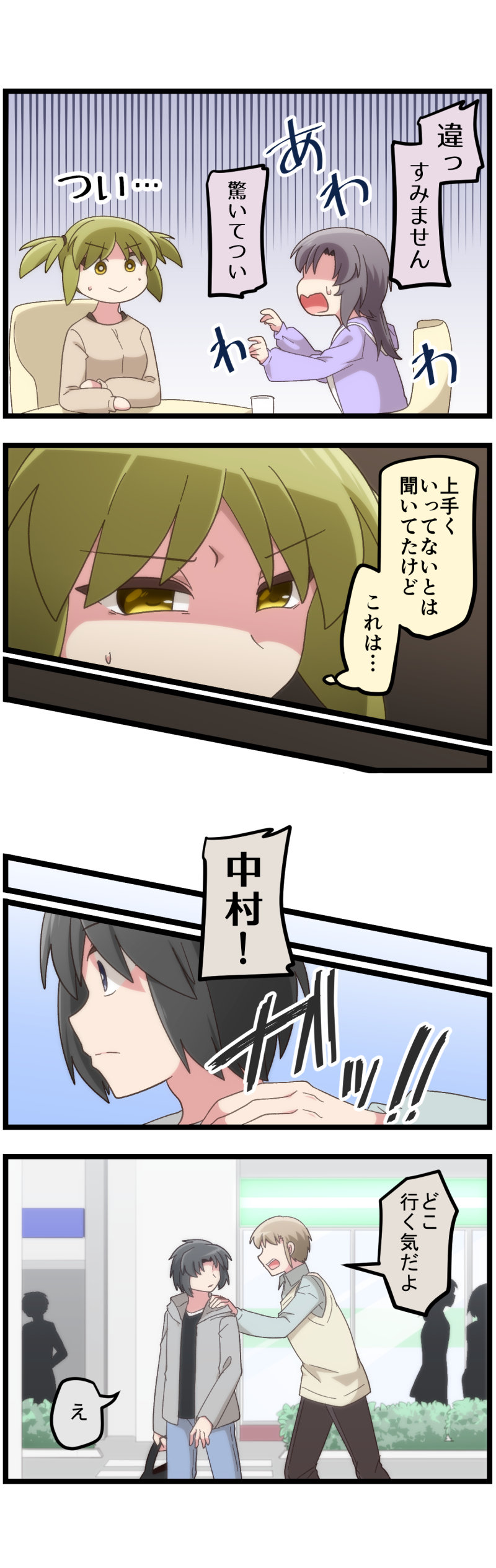 高橋は学校の休憩所的な所にいて、中村達は外です。心の眼で見てください。